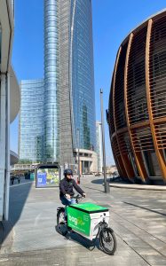 - la città di Milano: riduzione del traffico urbano e delle emissioni, grazie alla sostituzione dei furgoni tradizionali con mezzi a pedalata assistita.